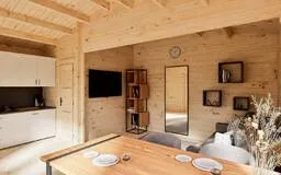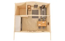 Уютный гостевой дом общей площадью 24 м² идеально подойдет для отдыха: в доме предусмотрена отдельная зона 3,5 м² для размещения санузла, широкий навес над входом защитит от непогоды, а большое окно и остеклённые двери наполняют пространство естественным светом. Дом может служить основным номерным фондом для туристических баз, предусматривающих летнее размещение гостей