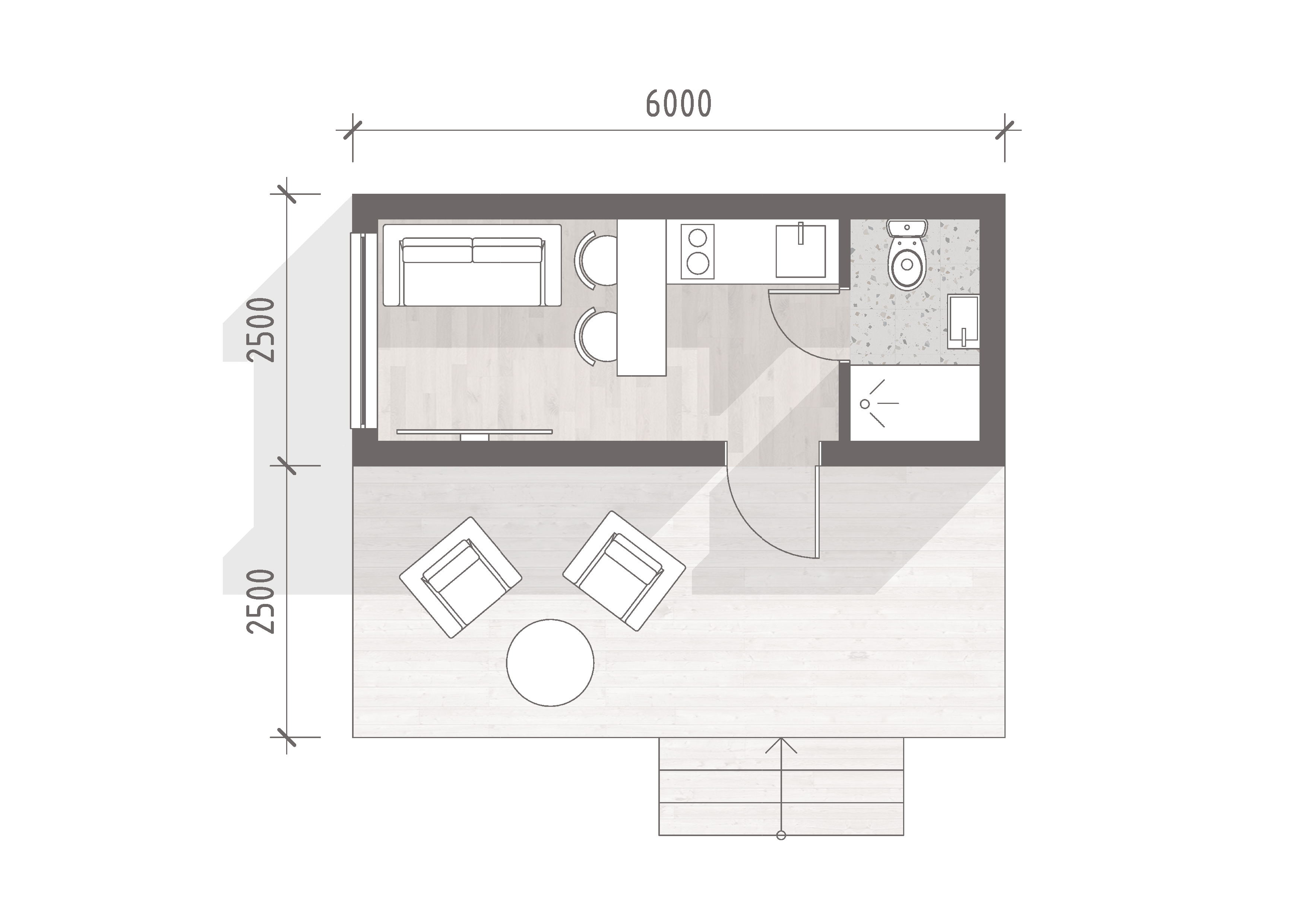 Красивый и стильный модульный дом с санузлом под ключ шириной 2,5 метра и длиной 6 метров. В доме Платт 15 включено все необходимо для проживания: