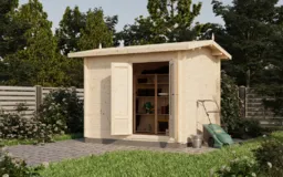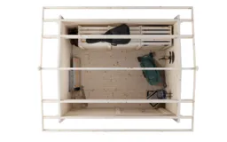 2. В комплектацию «Комфорт» входят все элементы комплектации «Стандарт», а так же готовая деревянная дверь, что дает возможность максимально вариативно использовать функционал хозяйственной постройки сразу же после сборки.